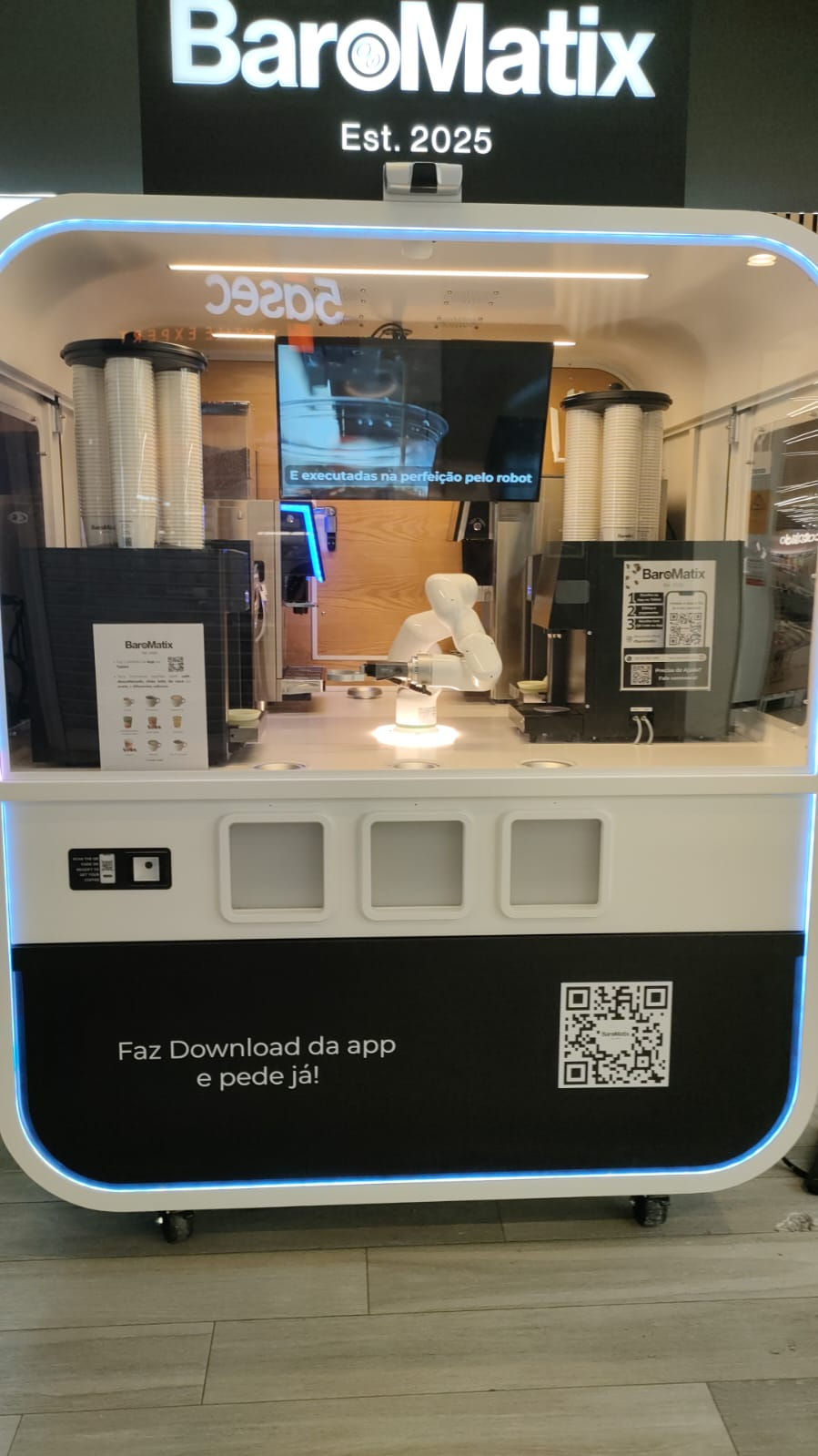 A Baromatix é o primeiro robot barista em Portugal e foi desenvolvido para oferecer uma nova experiência de bebidas com qualidade premium e precisão absoluta.​​